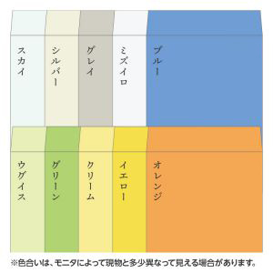 | 用紙色 | スカイ,シルバー,グレイ,ミズイロ,ブルー,ウグイス,グリーン,クリーム,イエロー,オレンジ |
